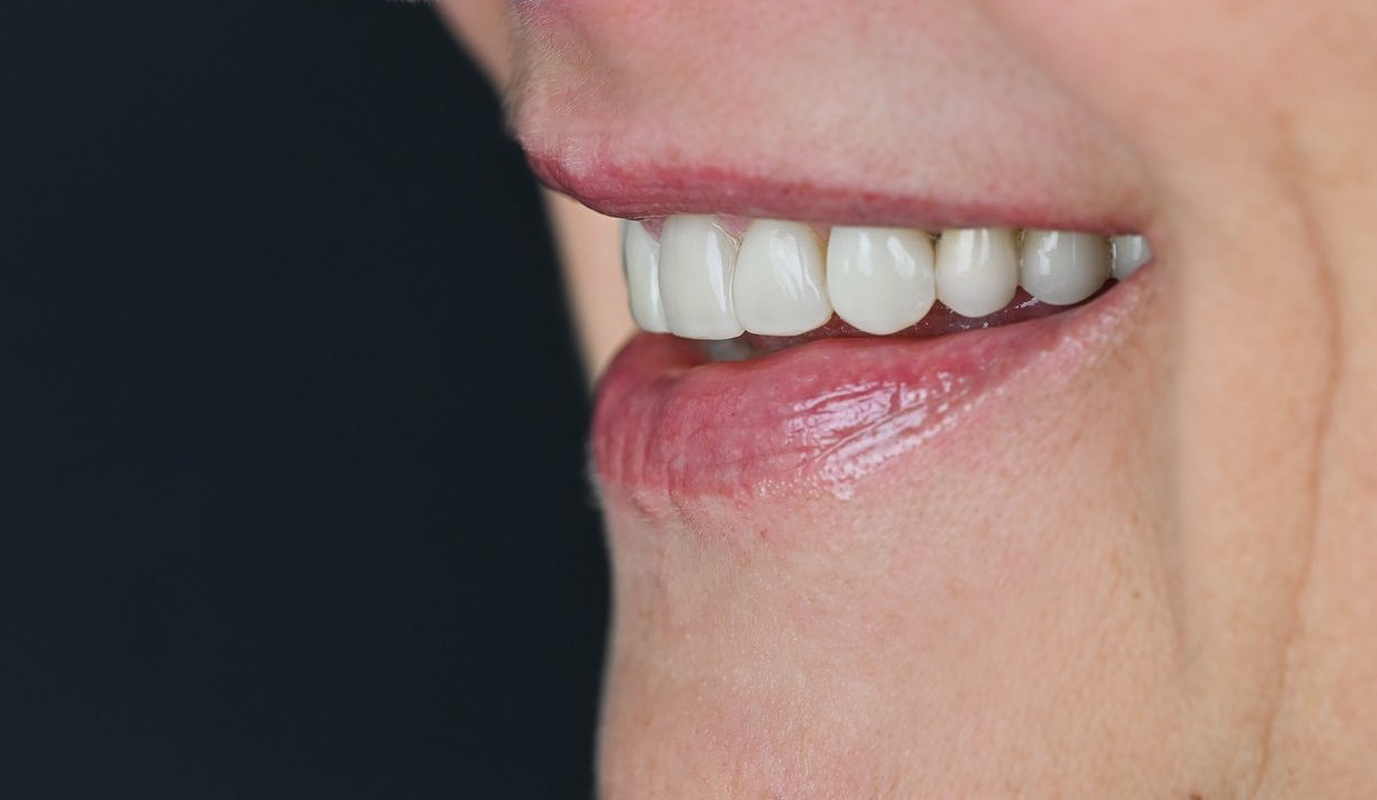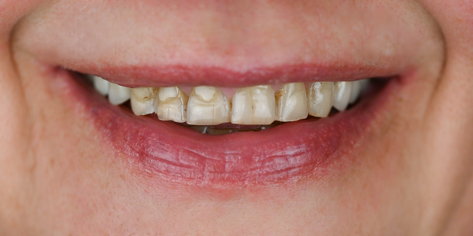 Pacienė kreipėsi dėl netenkinančio estetinio vaizdo, norėjo baltesnių dantų ir atstayti nudilusius kraštus bei pakeisti jau senas, nehermetiškas plombas.